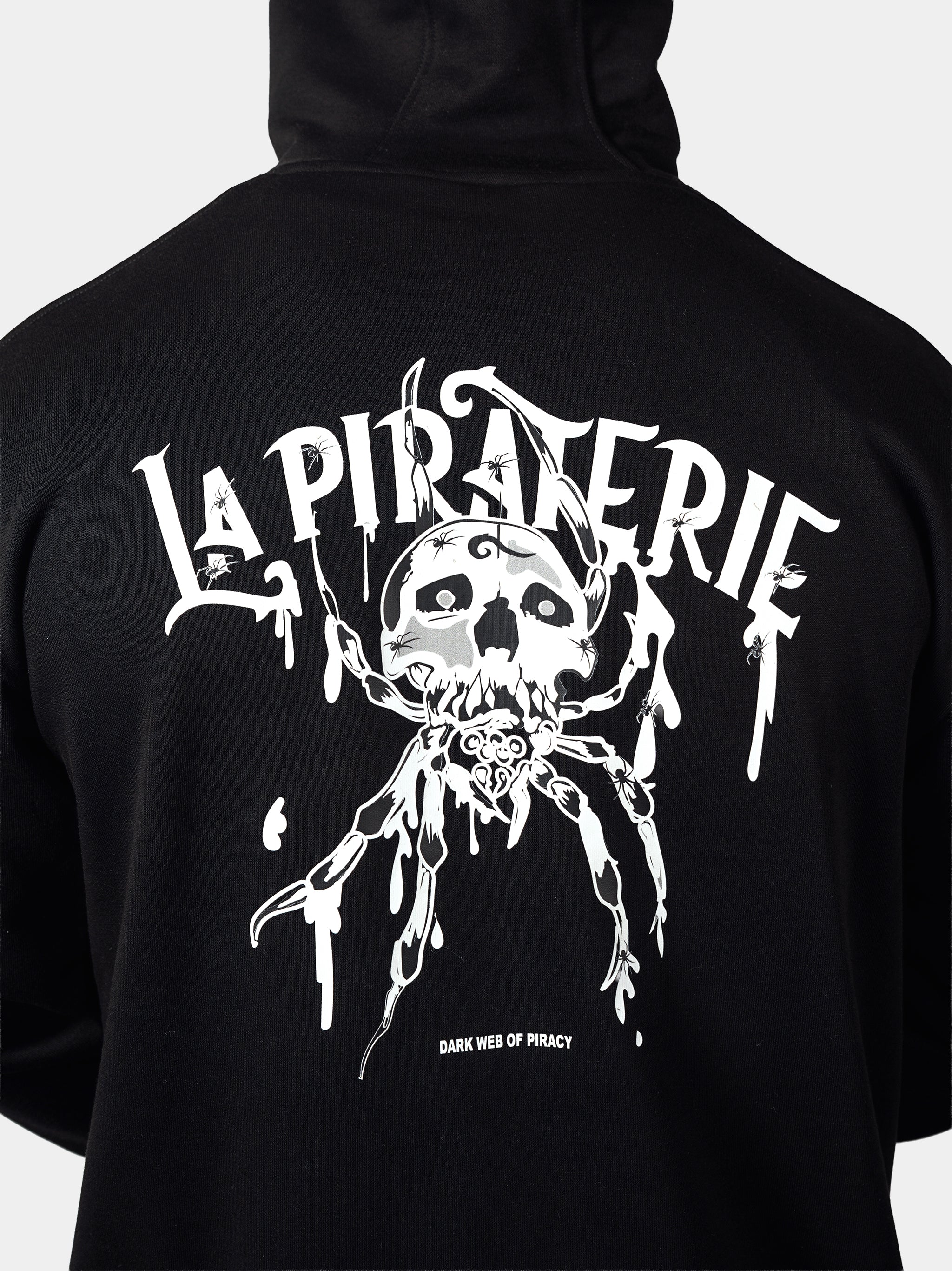 Le hoodie DarkWeb impose un style puissant avec son visuel araignée pirate emblématique au dos.