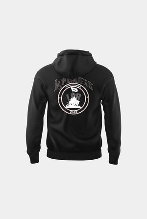 Hoodie premium noir avec imprimé au dos.