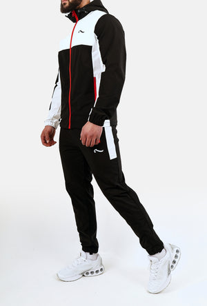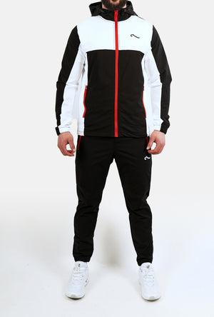 Survêtement Scarface 2.0 en coton 100% offrant une palette de couleurs audacieuse entre noir, rouge et blanc. Coupe classique ajustée pour une silhouette M (idéale pour 1m78), ce modèle arbore le logo Wave emblématique en blanc et noir. Matière premium et respirante, parfait pour un style streetwear affirmé au quotidien ou en loisir. Détails de finition soignés pour une allure intemporelle.