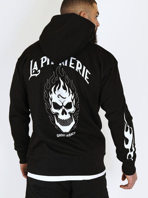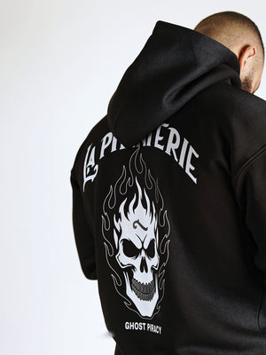 Découvrez notre hoodie Ghost Piracy, modèle noir 320g avec imprimé d'un skull en flammes. En coton et polyester pour le confort, avec des détails en flamme sur les manches pour un look exceptionnel. Idéal pour les amateurs de mode et de danger. Profitez de notre produit de qualité.